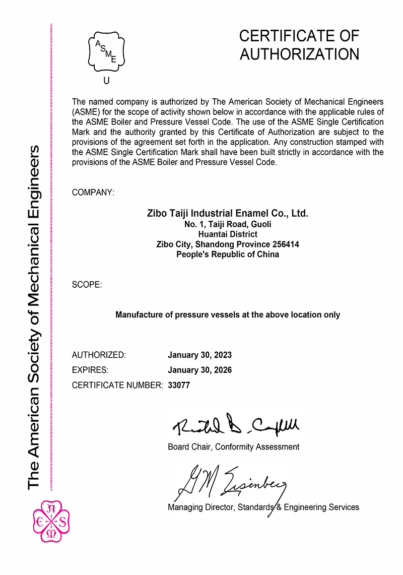 HOW TO CHOOSE淄博太極工業(yè)搪瓷有限公司專業(yè)制造搪玻璃設(shè)備、氟塑料設(shè)備及碳鋼、不銹鋼壓力容器的大型企業(yè)?,F(xiàn)有員工1000余人,注冊資金11900萬元,占地600畝,生產(chǎn)車間19萬平米,凈資產(chǎn)超20億元。太極以人為本,單用于職工的居住生活投入已達(dá)3億,使工者有其房,家人生活及孩子....[查看更多]